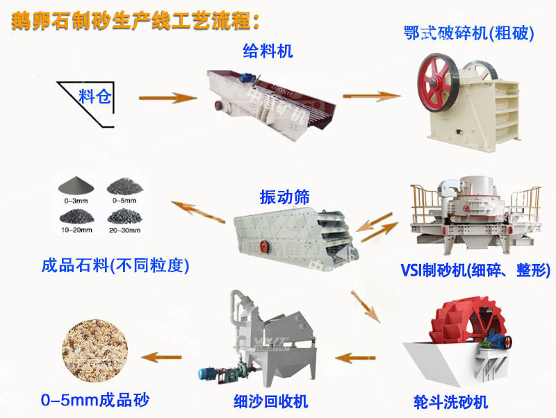 设备配置:振动给料机、颚式破碎机、皮带输送机、圆锥破碎机、振动筛、冲击式制砂机等